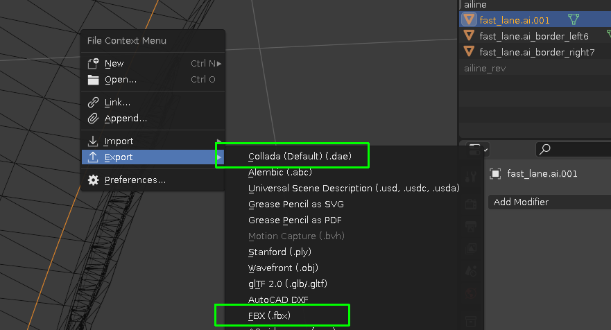 the ai-line import addon imports it as meshCan't export just the line to any of those formats I dont think. Only meshes.
